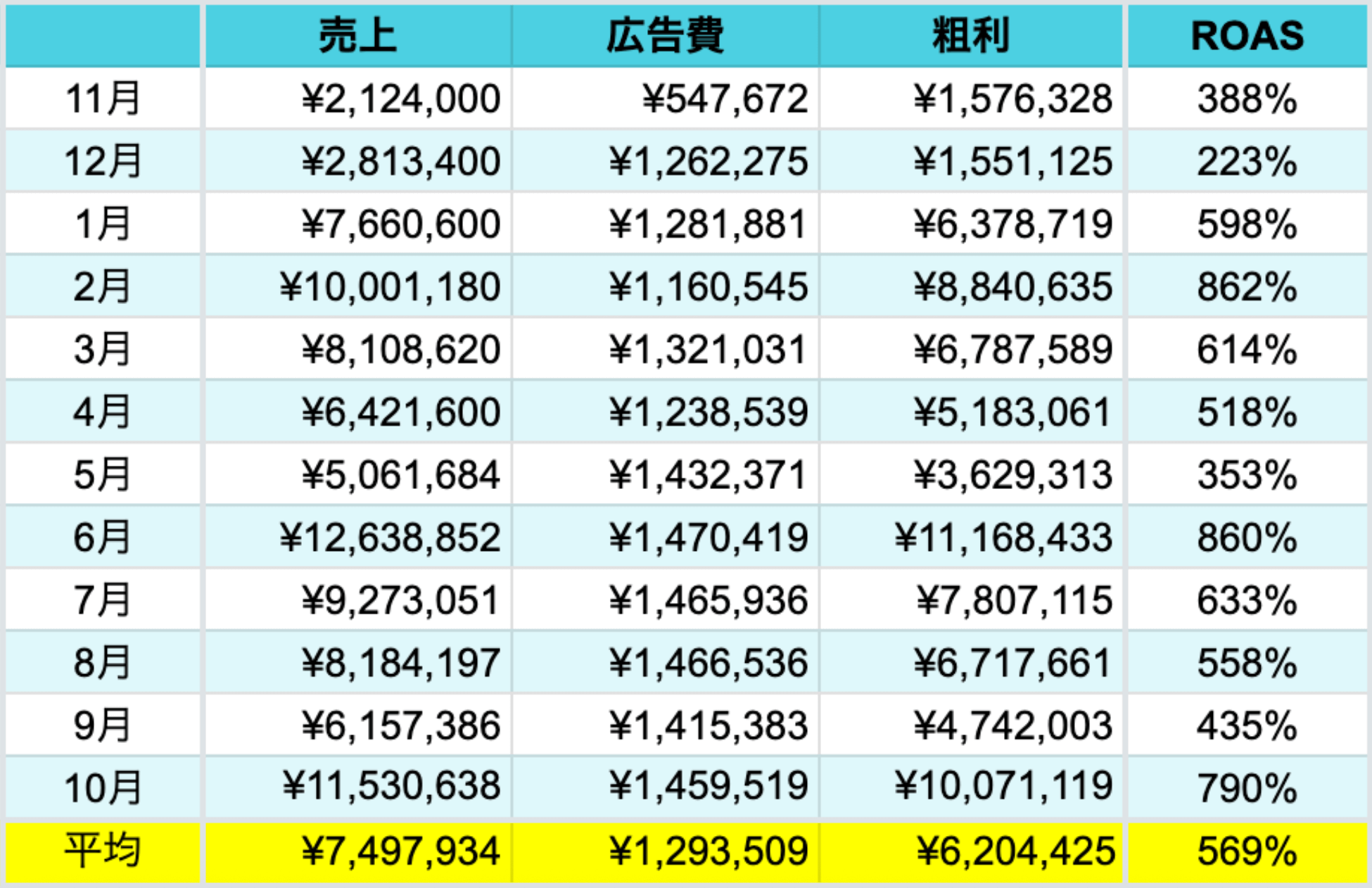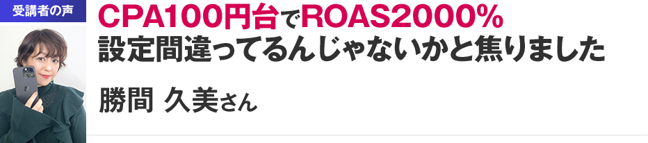 初動でのCPAが100円代でROASが2,000%となり、設定間違ってるんじゃないか?とざわつかせてしまったのですが、、、素晴らしいコンセプトのおかげでこのような数字を出すことができました。
