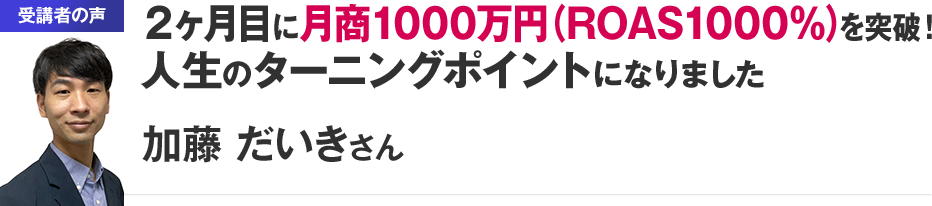 広告運用初心者の状態から丁寧にご指導いただきありがとうございました。