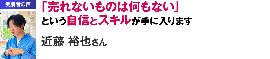 どんなサービスでも売ってこられた第一線でご活躍中の講師の方からのお話は非常に貴重で、売れるサービスの特徴・表現方法などここで学んだことはどんな事業でも役に立つものでした。